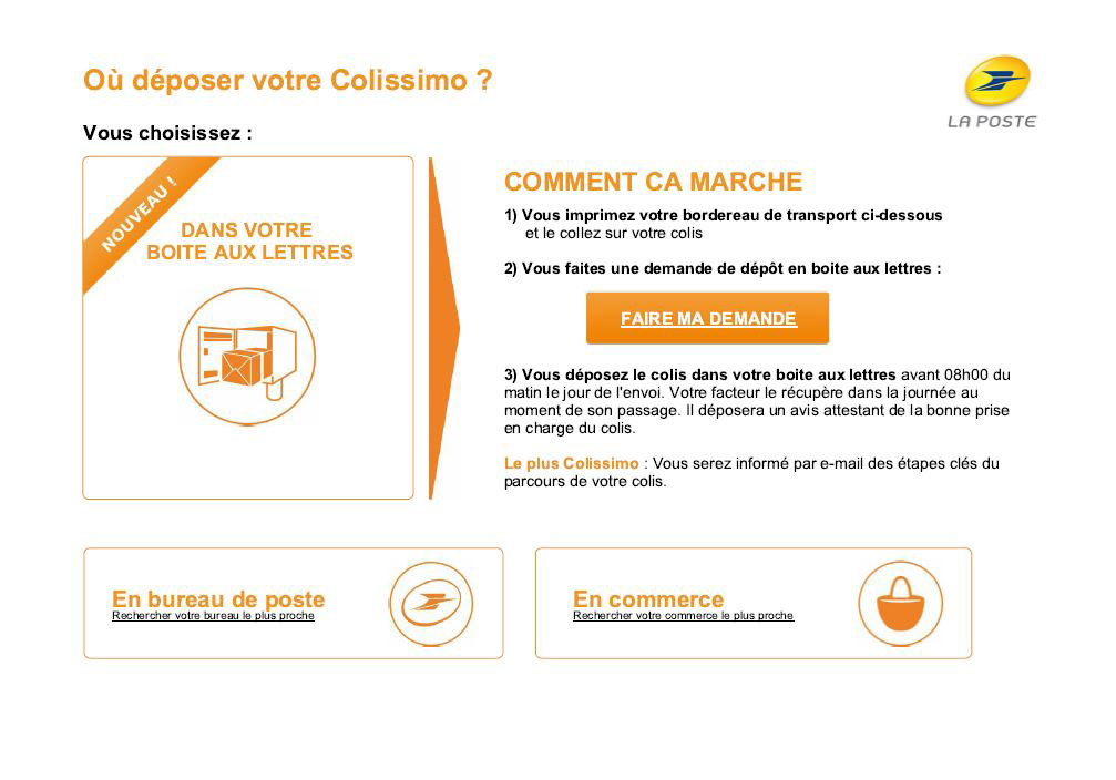 Retrouver tous les points de dépôt Colissimo pour votre retour et la procédure à suivre pour le dépôt en boite aux lettres :